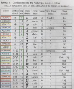 4         Scaricare le Tavole e colorale come si vuole. C’è anche l’indicazione del colore nella Tavola, ossia ogni lettera ha il suo colore, che è la sua vibrazione, così come la sua nota. Possiamo usare quel colore ma anche un altro. Ascoltarsi dentro, sempre.